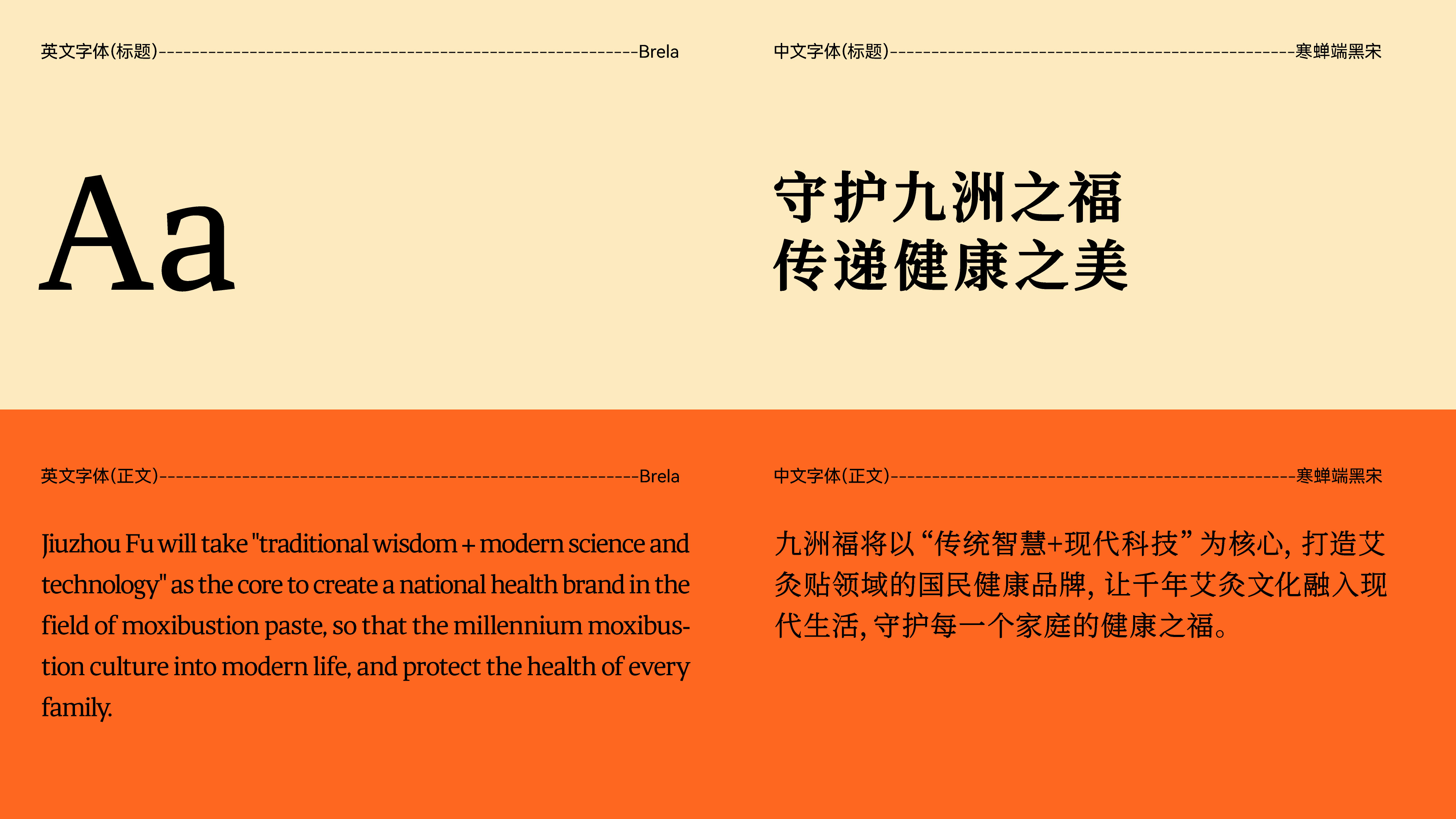 The brand color chosen for this project is orange, which gives a warm feeling like the sun, aiming to indicate that this moxibustion patch product brings consumers a warm sensation. The design of the auxiliary graphics takes the character "九" in the brand name as the visual carrier, integrating the form of the immortal herb (mugwort) to convey the traditional Chinese medicine philosophy of harmony and unity, symbolizing the brand concept that moxibustion patches regulate the body and mind through the natural energy cycle. The structure of the character "九" uses smooth curves to interpret "九", maintaining the recognizability of the Chinese character while forming a closed loop, symbolizing an endless cycle and universal benefits across the nine continents. The design of the top Crown fairy grass (mugwort) symbolizes the harmony of heaven, earth and man, corresponding to the holistic view of traditional Chinese medicine. The minimalist flame line implies the warming and unblocking characteristics of moxibustion, imitating the left-growing posture of mugwort to enhance its natural herbal attributes.