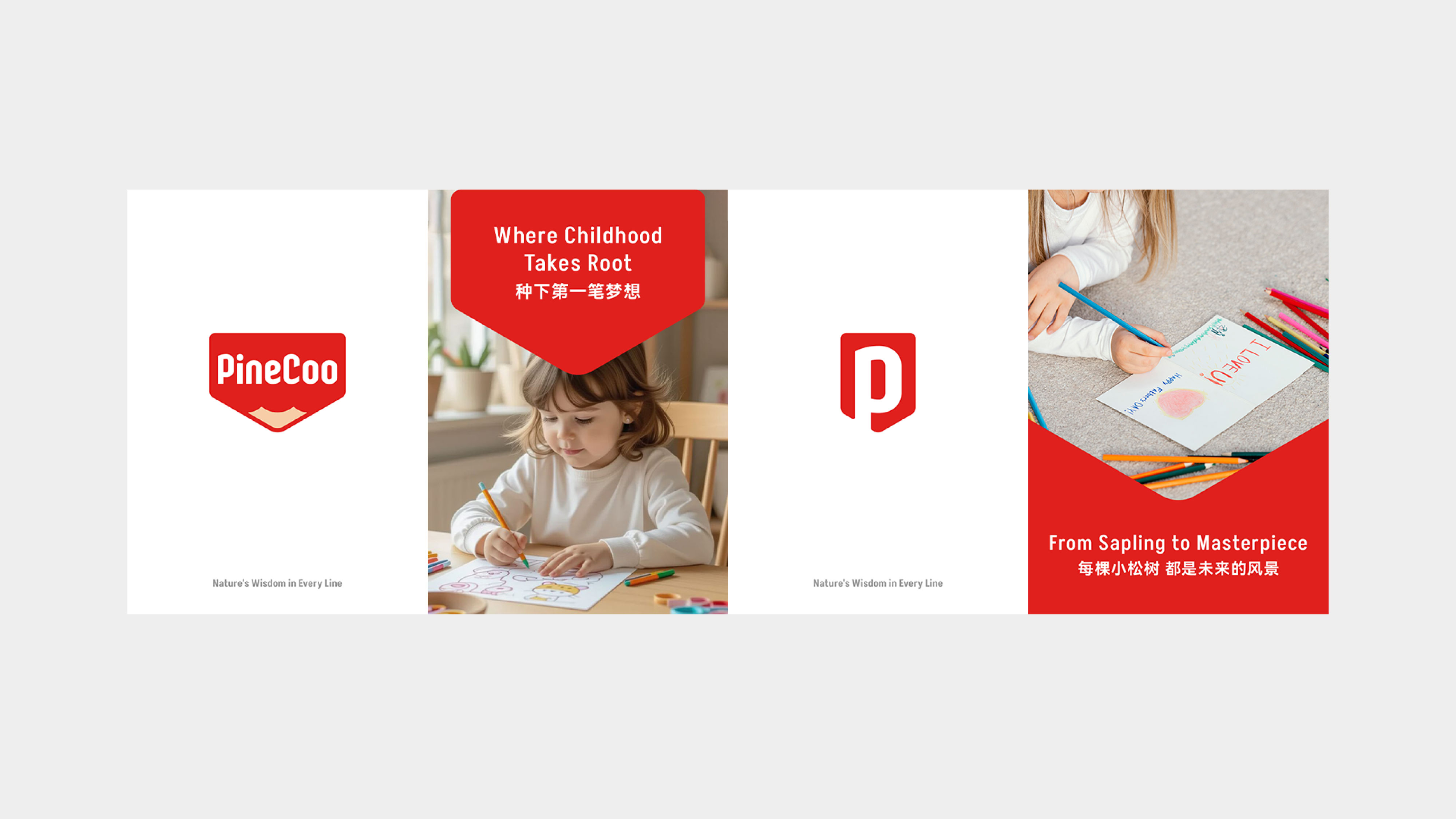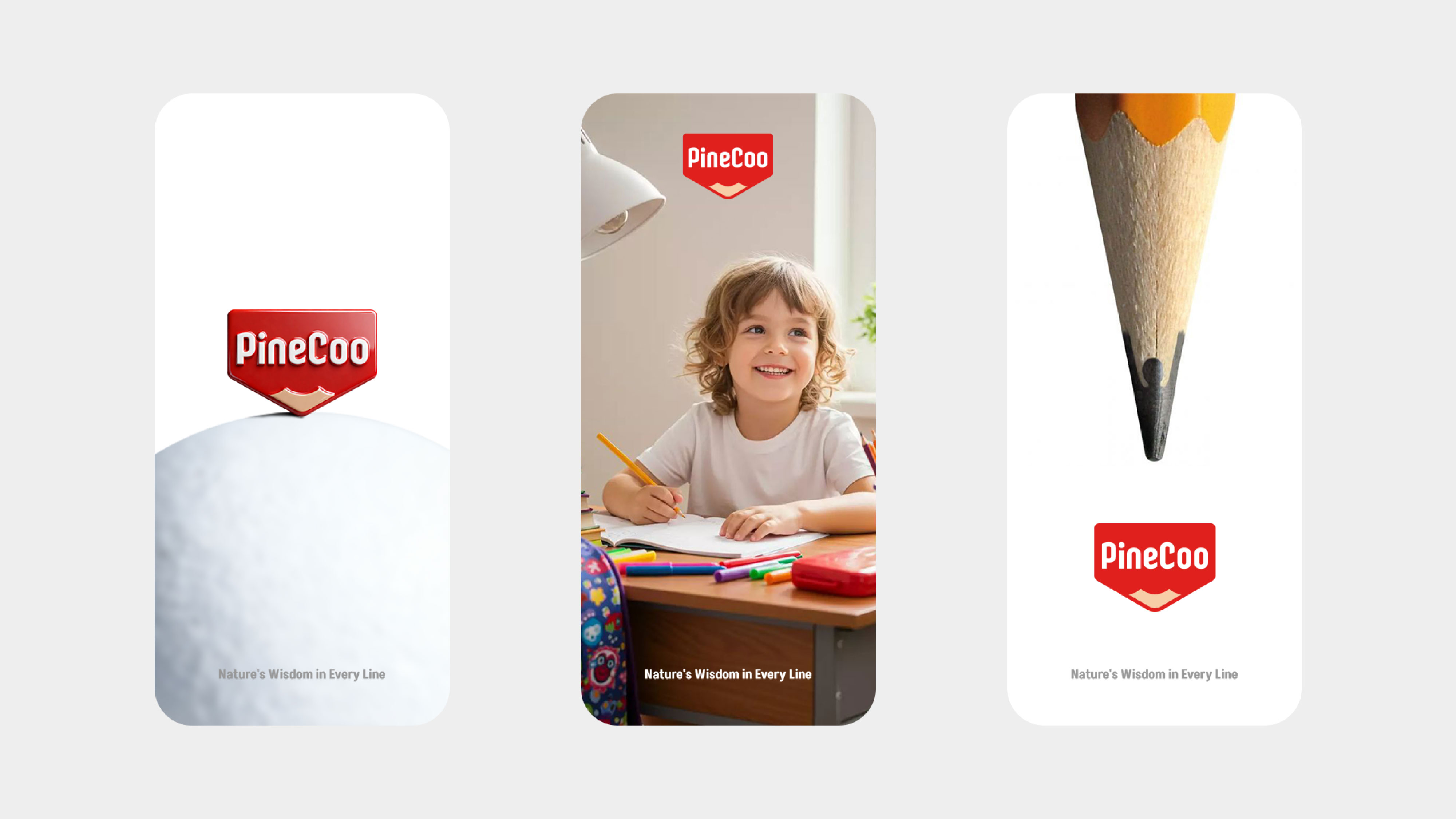 本次项目以降低产品开发难度,打造品牌形象,积累品牌资产,统一国内外产品视觉形象为主要设计目标,为PineCoo创造了全新的LOGO形象,使用铅笔头为LOGO垫底,使得在产品各大复杂版面上都能清晰识别且具有统一性,让品牌在混乱的视觉环境下脱颖而出。